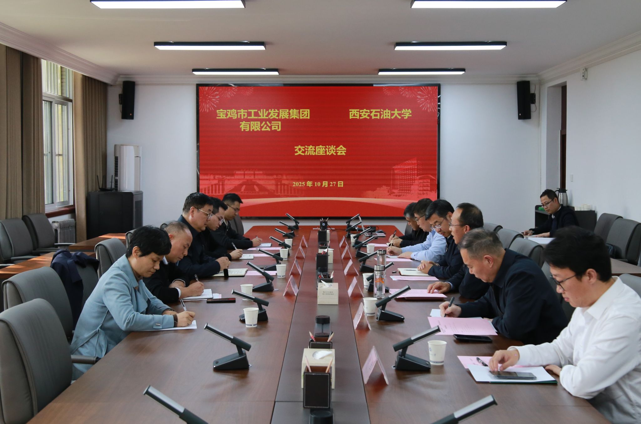 罗鹏伟对学校热情接待表示感谢,并详细介绍了宝鸡工发集团的战略定位、核心业务布局及未来发展规划。他谈到,集团聚焦石油化工、先进制造、生物医药等八大产业,以“四个平台”建设为抓手,在产业延链补链强链、新质生产力培育等方面持续深耕发力。他表示,西安石油大学作为西北地区唯一一所以石油石化为特色的多科性高等院校,在石油化工等学科领域优势显著、成果丰硕。当前正值集团高质量发展的关键阶段,在技术创新、成果转化、人才储备等方面亟需高校的智力和人力支持。他期待与西安石油大学建立长期稳定的合作机制,在技术协同创新、科研成果转化、人才联合培养、企业员工继续教育、学生实习就业等领域开展全方位合作,通过资源共享、优势互补、协同跃升,实现双方共赢。