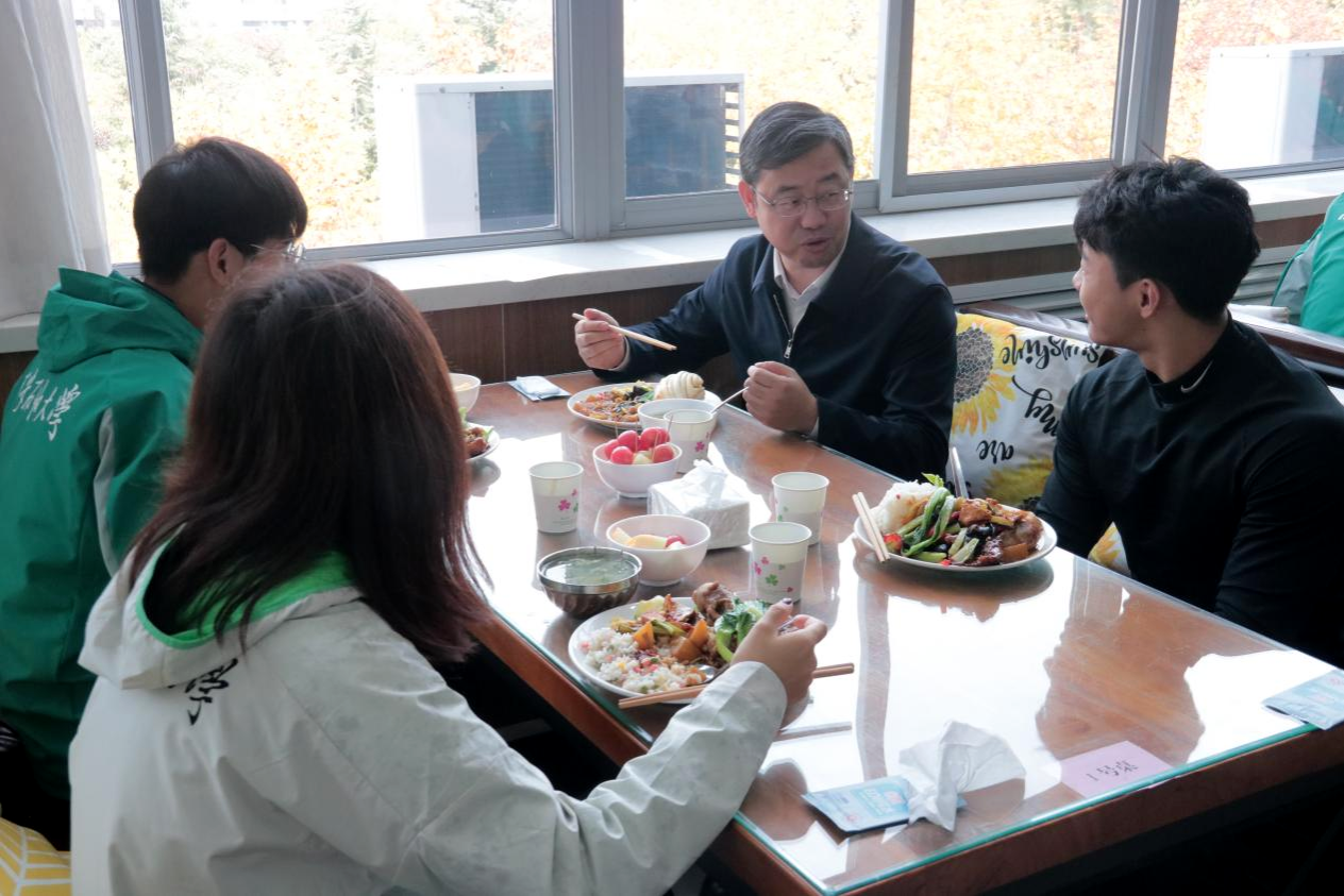 仪式结束后,校领导以及各相关职能部门和学院负责人与运动员代表共同举行了“师生午餐会”,并向同学们赠送了纪念品。餐桌上,与会各位老师与学生们亲切交流,询问运动训练和在校生活情况,积极关心和回应同学们近期关注和遇到的各类问题,在学习、就业、生涯规划等方面给予同学们很多建议。大家纷纷表示,校领导及老师们的关怀让他们倍感温暖,未来将以更优异的成绩回报母校。
