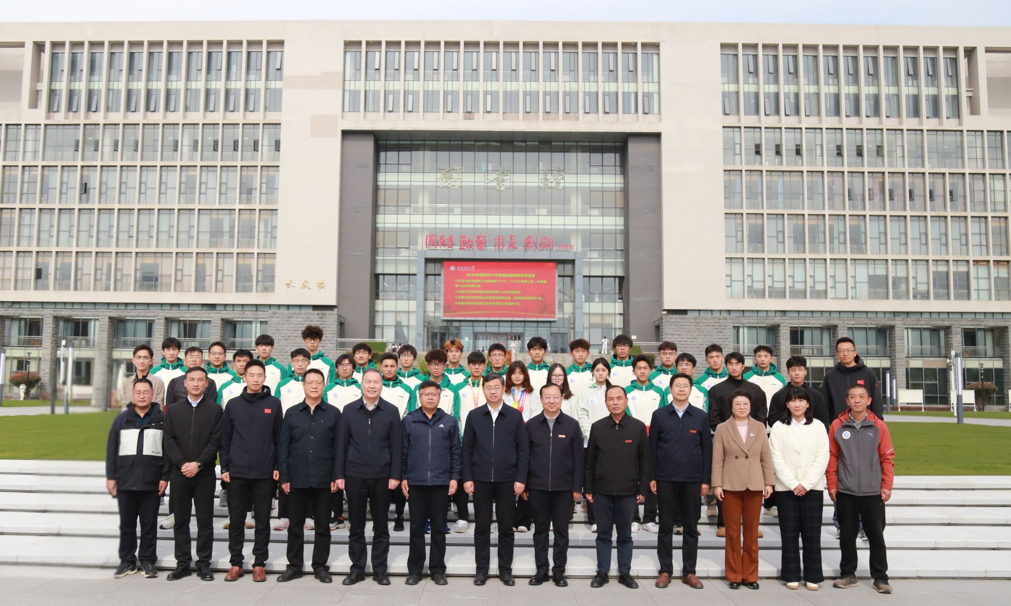 2025年陕西省大学生田径运动会、陕西省大学生健美健身锦标赛近日落下帷幕,我校田径队、健美队在比赛中斩获佳绩。10月31日,学校在鄠邑校区初心广场为载誉归来的校田径队、健美队师生举行了慰问及表彰仪式。校长王进富,副校长张骁勇、种宇宏出席仪式。党委办公室(校长办公室)、党委宣传部、党委学生工作部、团委、教务处、校友工作与合作交流处、体育学院负责人参加仪式。仪式由体育学院院长李寿邦主持。