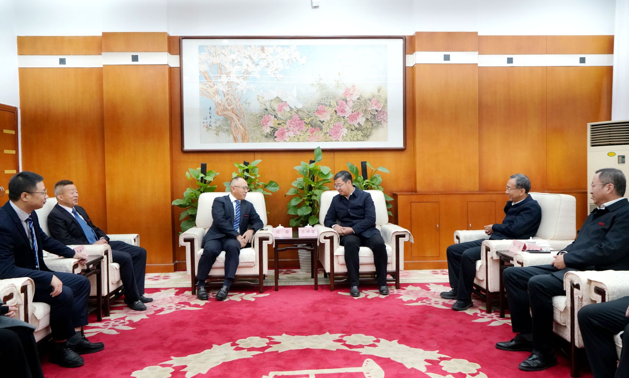 会前,王进富在雁塔校区会议中心贵宾室热情会见了何荣一行,张木、张荣军等参加了会见。