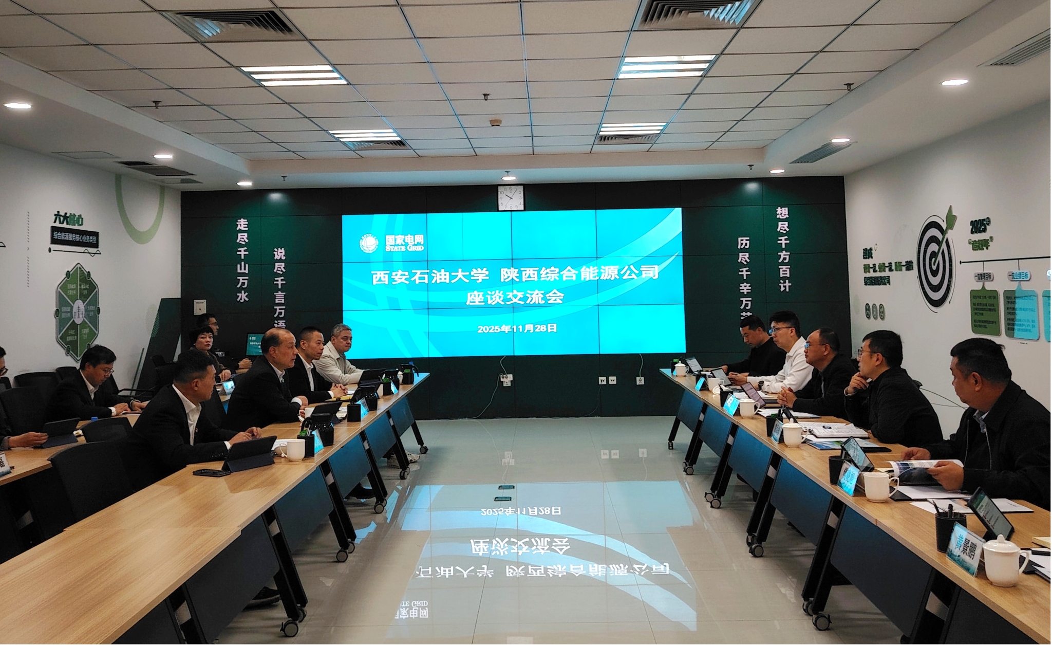 11月28日上午,副校长赵健带队赴国网陕西综合能源服务有限公司(以下简称“公司”)座谈交流。公司董事长、党委书记韩军林,副总经理李小飞,西安亮丽电力集团有限责任公司五公司经理白龙飞出席座谈会。会议由公司总经理蒋志炀主持。双方围绕校园能效服务提升、电力增容、产学研融合等合作事宜深度交流,共同探讨校企合作新路径。