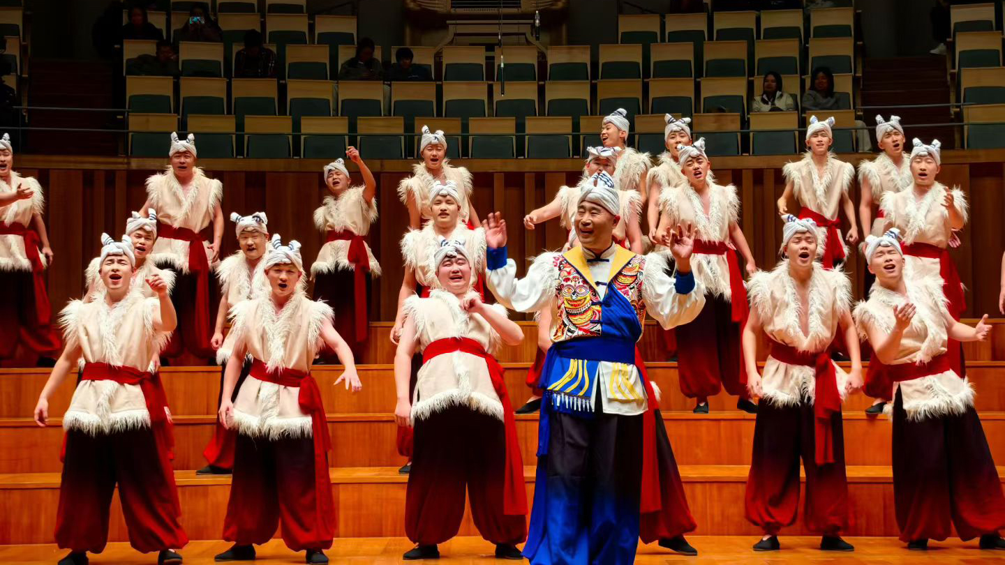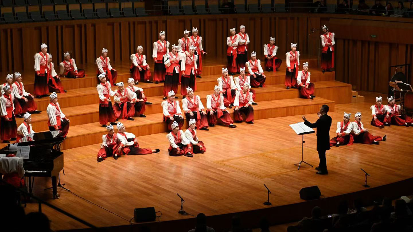 在本次演出过程中,我校合唱团以陕北民歌这一国家级非物质文化遗产为核心,通过现代合唱艺术语汇,先后合唱了《黄河船夫曲》《走西口》《神仙挡不住人想人》等具有鲜明地域特色十首歌曲,彰显了陕北民歌的原始生命力与文化深度,展现了传统民歌与现代编创的相映生辉,实现了非遗的“活态传承”。作为整场演出的点睛之笔,承载了几代石油人记忆的经典作品《我为祖国献石油(新编》》通过合唱艺术的重新演绎,焕发出新的生命力。当熟悉的旋律在国家大剧院音乐厅回荡,高亢的信天游与铿锵的石油赞歌交织共鸣,既彰显西北文化的雄浑气魄、石油文化的奉献底色与能源报国的赤子情怀,更是学校办学理念的生动艺术表达,赢得了全场雷鸣般的掌声。
