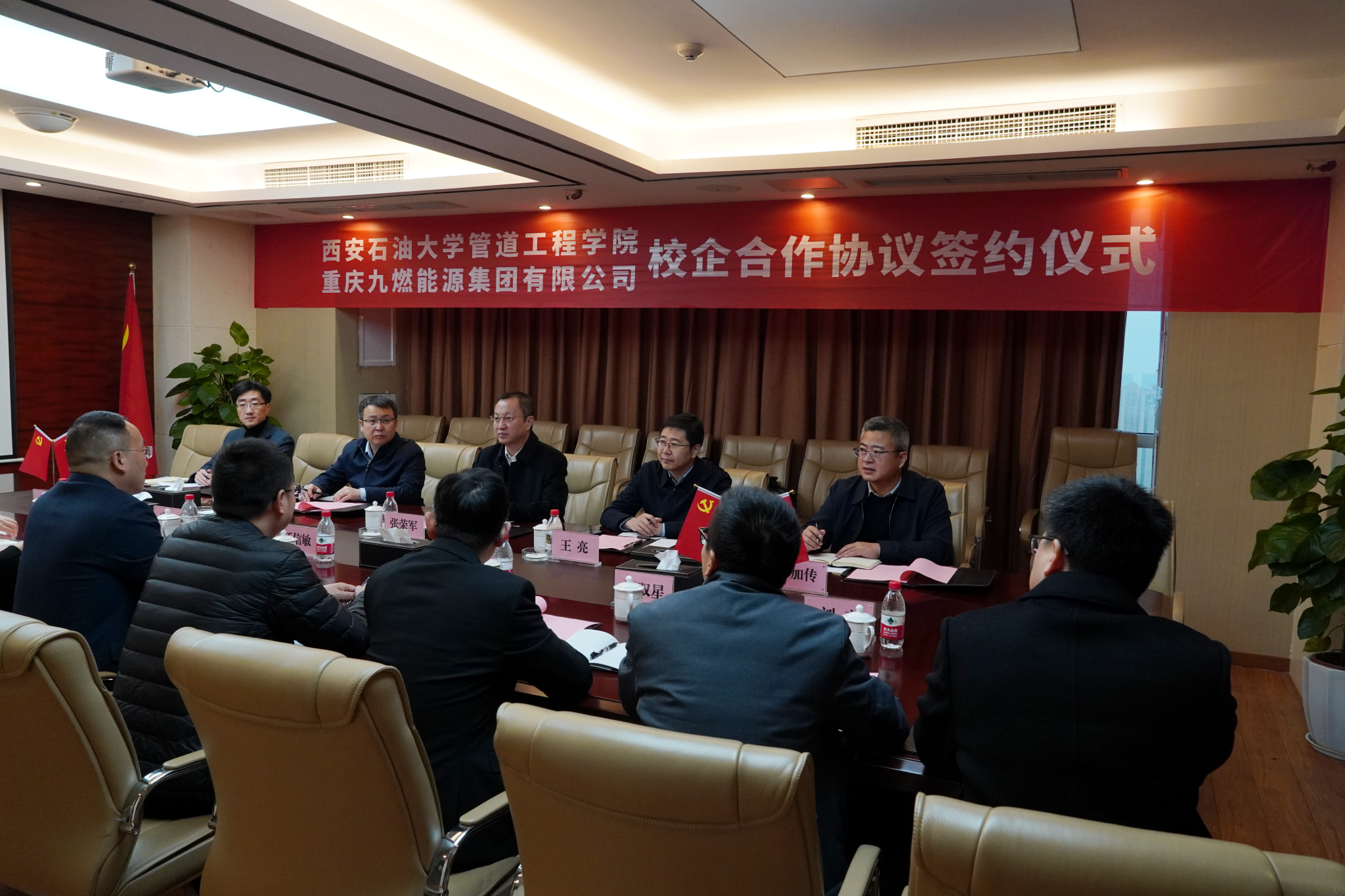 为促进我校产学研协同发展与企业需求精准对接,实现资源共享与优势互补,12月22日,副校长张荣军带队赴重庆九燃能源集团有限公司(以下简称“九燃能源集团”)交流座谈,并代表学校与集团签署校企合作框架协议,九燃能源集团董事长江信敏及相关部门负责人出席活动。双方围绕课题研究、专业建设、人才培养、学生实习就业、员工继续教育与培训等方面展开深入交流。